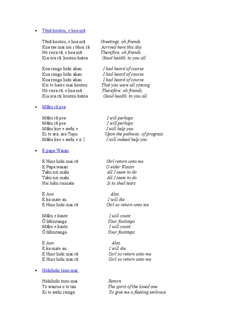 Hoki Mai - Maori Song Lyrics | Maori songs, Maori words