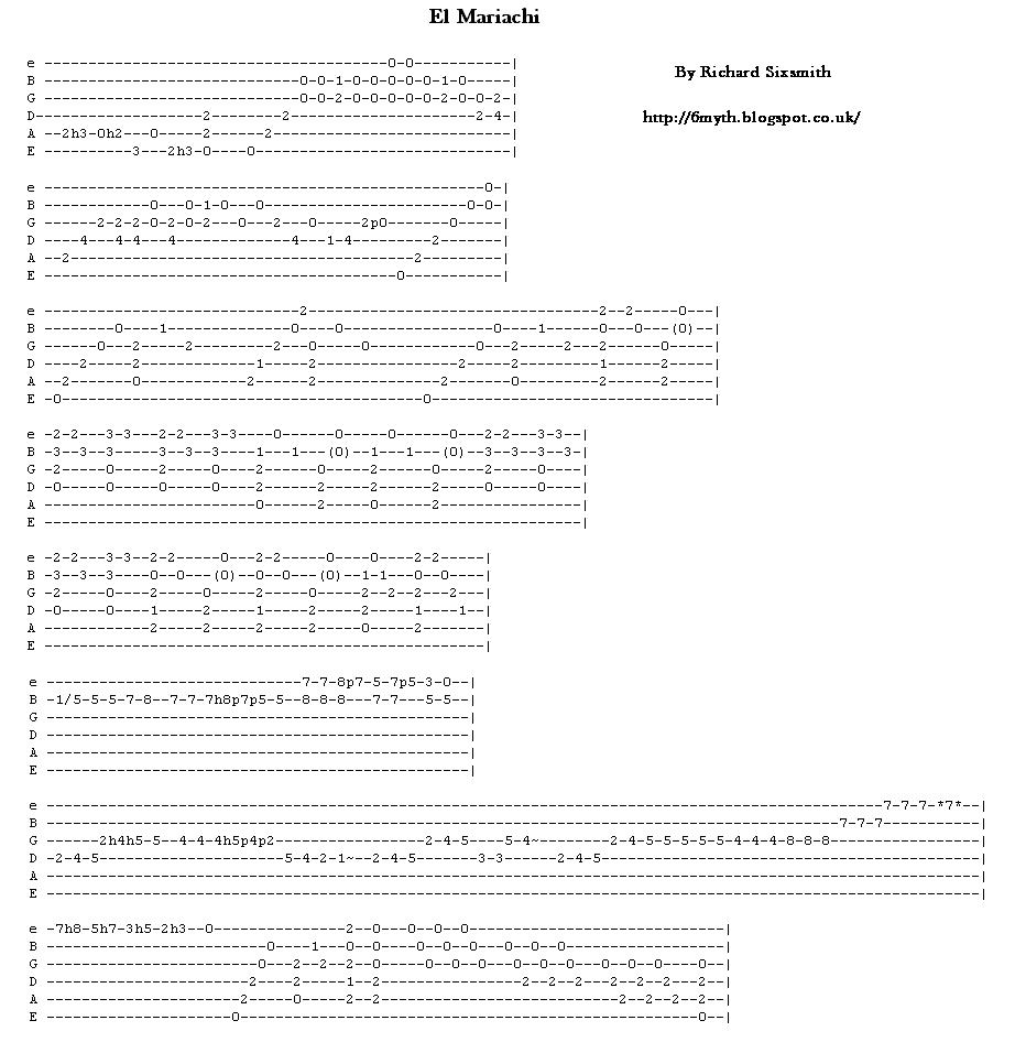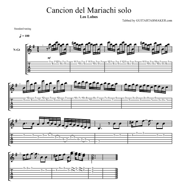 Cancion del Mariachi solo TAB - spanish guitar solo tab