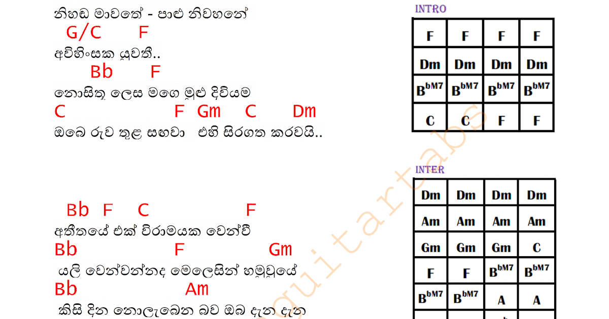 Nihada Mawathe Guitar Chords | Sinhala Guitar Chords