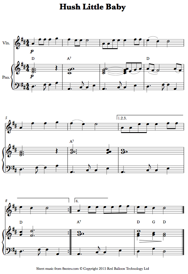 Hush, Little Baby - Tab & Sheet Music | FreeWheelinGuitar.com