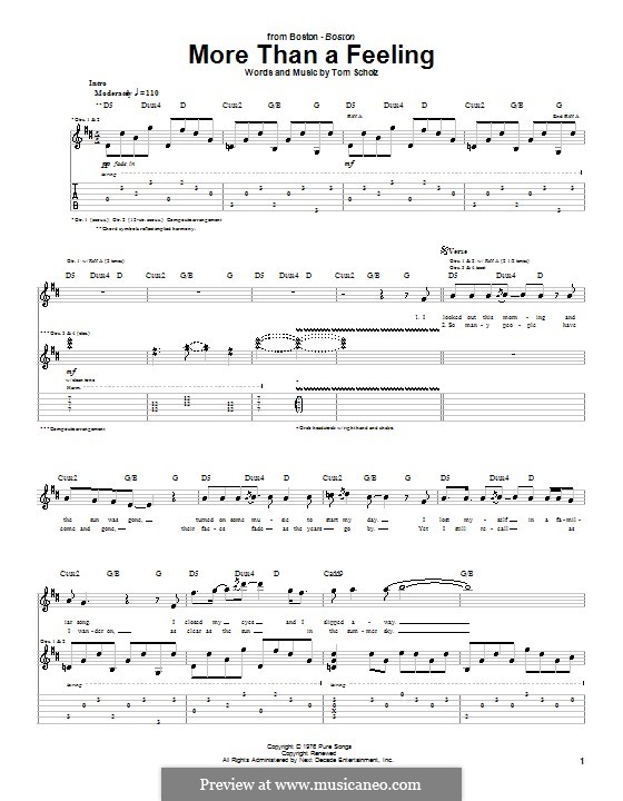 Boston "More Than a Feeling" Guitar Tab - Download & Print