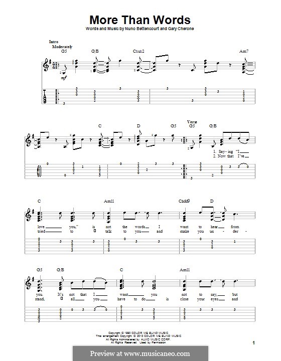 Extreme "More Than Words" Guitar Tab in G Major - Download