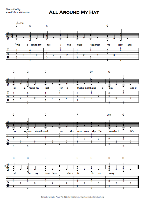 Guitar Tabs: Guitar Tabs & Song Sheet For: All Around My Hat