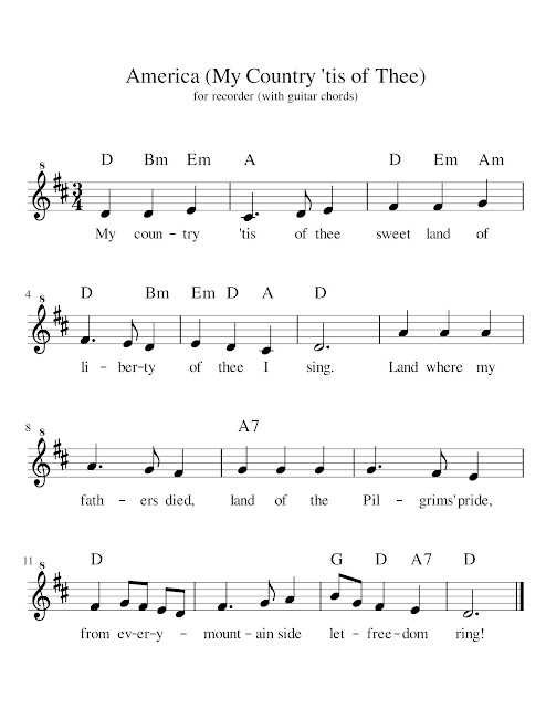 My Country 'Tis of Thee: Chords, Sheet Music and Tab for