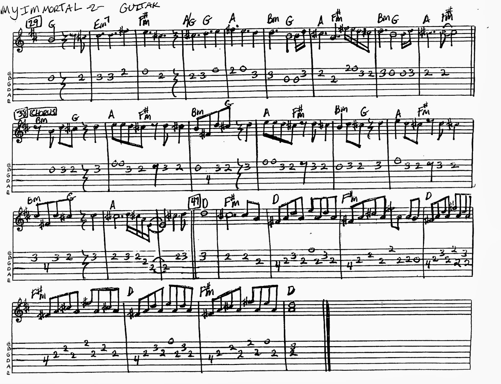 Evanescence - My Immortal Guitar Cover note tab lesson