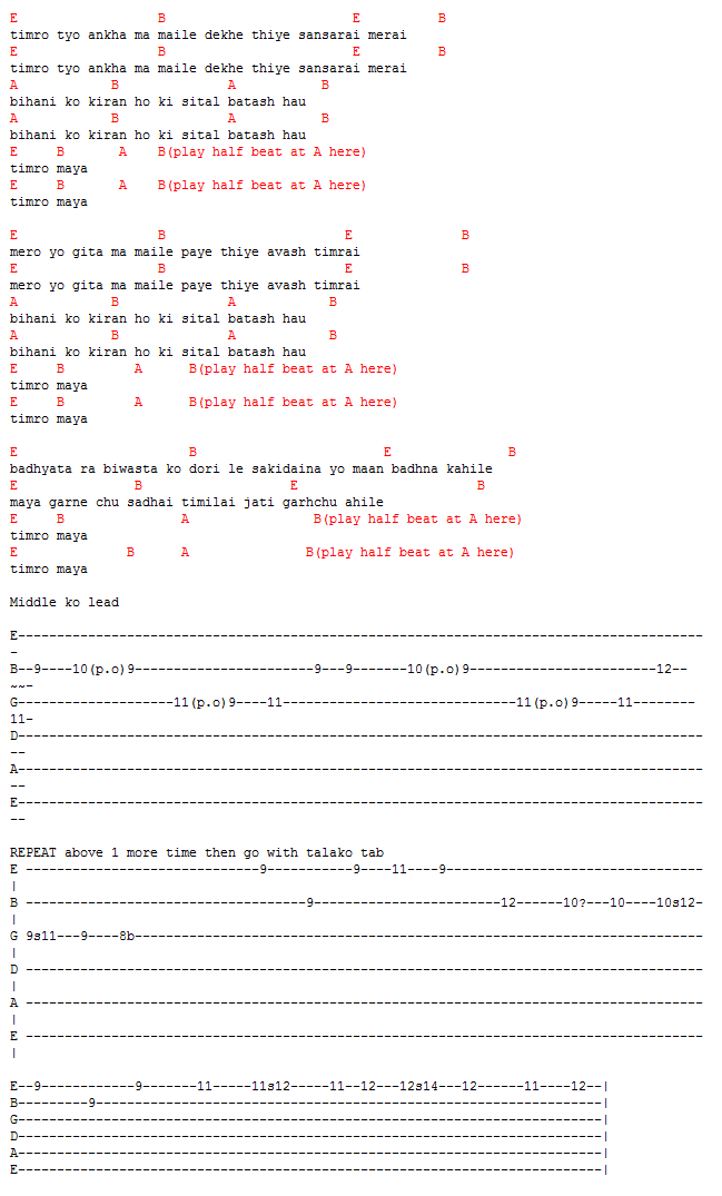Nepali Songs' lyrics, guitar chords & tabs: Chiya Bari Ma