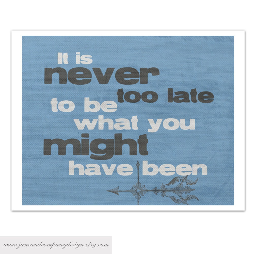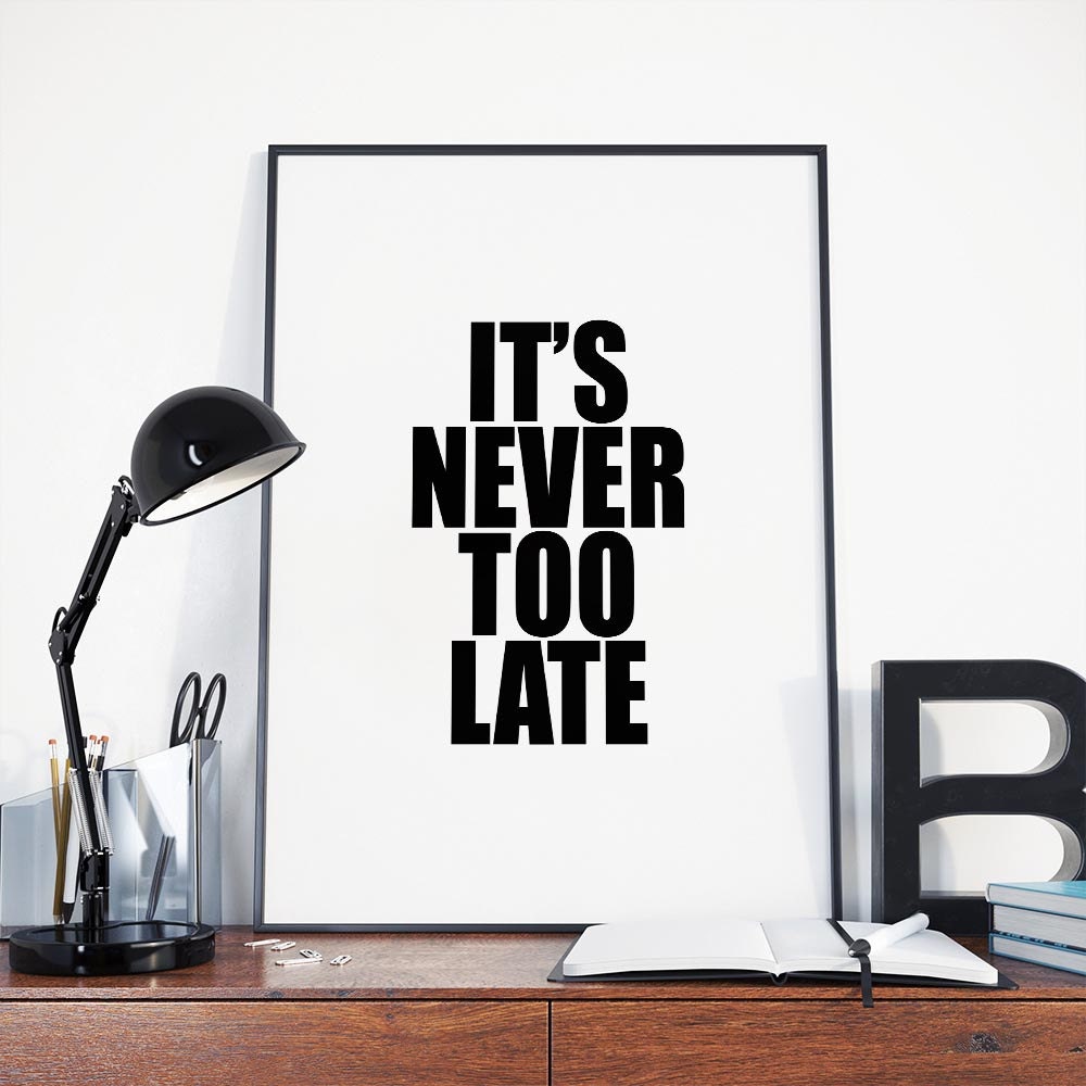 its never too late typographic art print quote by