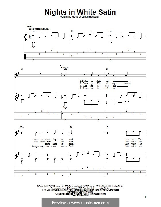 Nights In White Satin sheet music by The Moody Blues