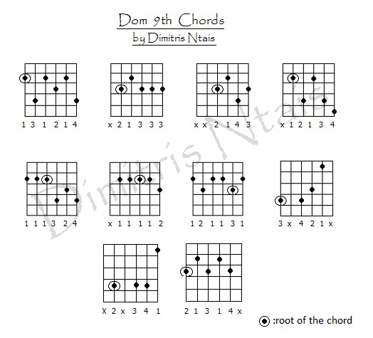 9th Guitar Chords - Dominant 9th chords | Bellandcomusic.Com