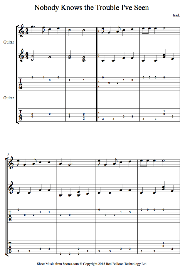 Nobody Knows The Trouble I've Seen sheet music for guitar