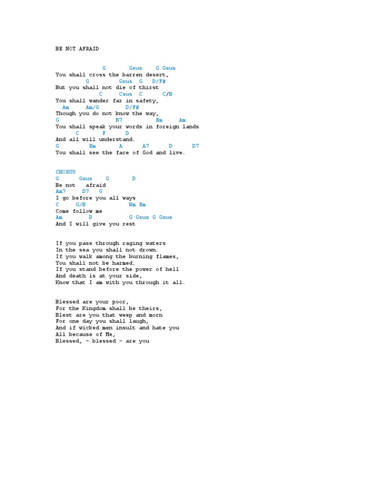 BE NOT AFRAID - Christian Gospel Song Lyrics and Chords