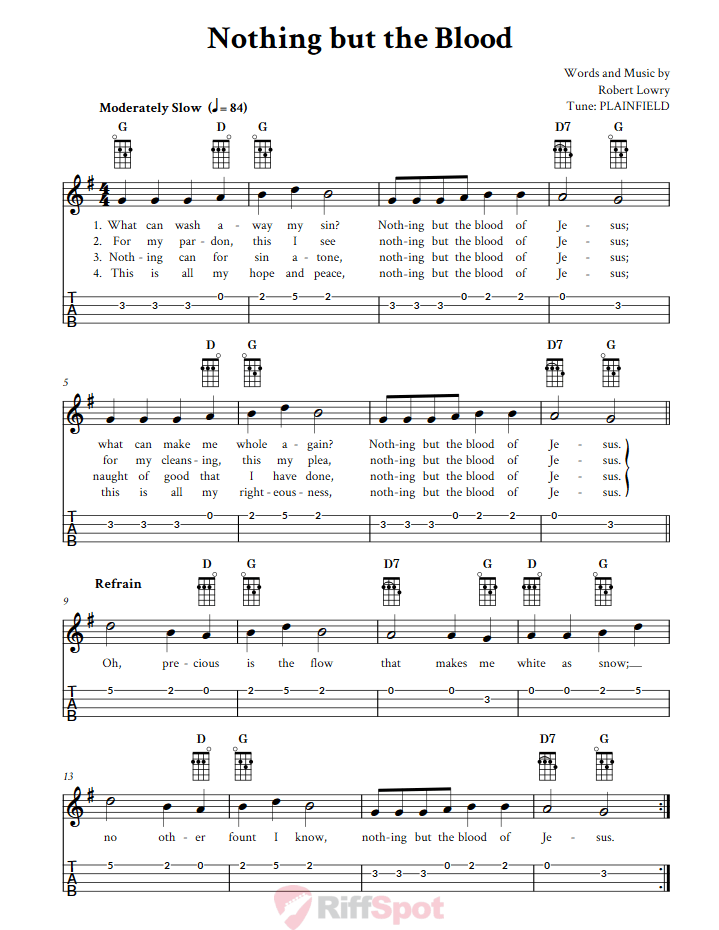 Nothing But The Blood by Robert Lowry - Ukulele - Guitar
