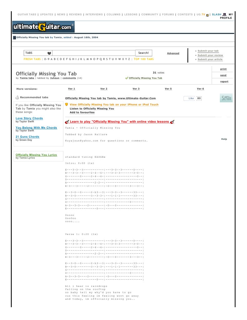 Officially Missing You Guitar Tab