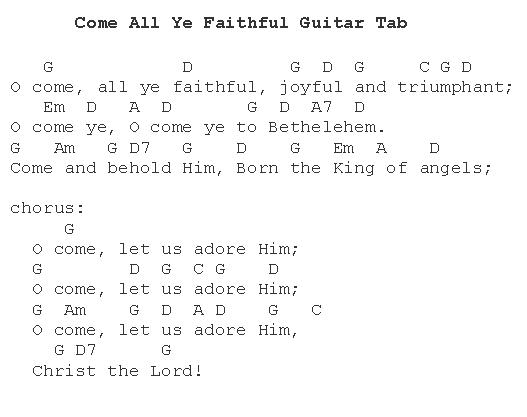 Guitar Tab and sheet music for O Come, All Ye Faithful