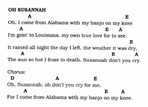 Summer Camp Song, Oh Susanna, with lyrics and chords for