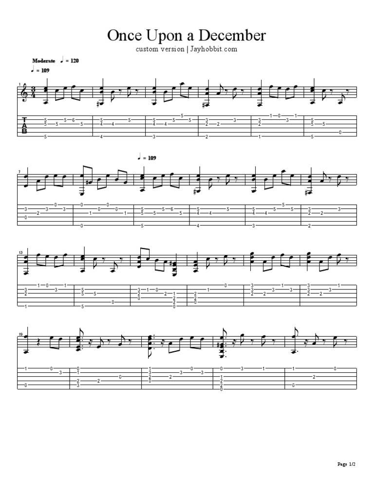 Once Upon A December for guitar. Guitar sheet music and tabs.