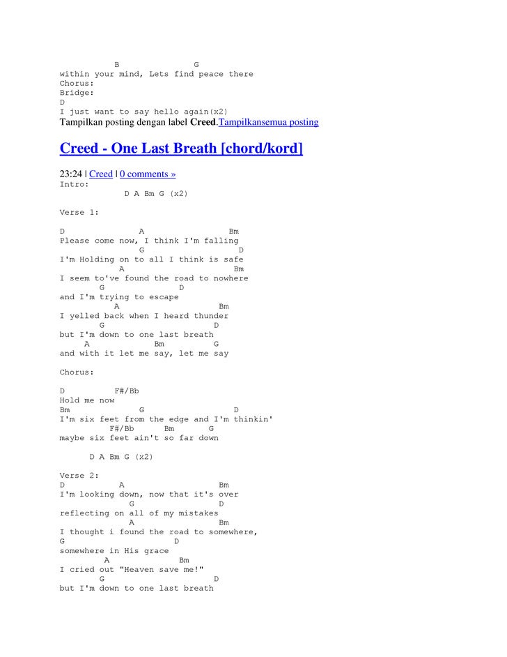 Creed - One Last Breath - Lyrics Chords - Chordify