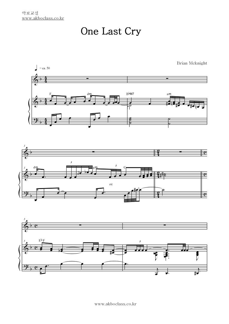 Brian Mcknight-One Last Cry/피아노악보,가요악보,색소폰악보,CCM악보,악보교실