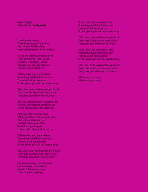 Secrets By OneRepublic Sheet Music. Ok I don't know the