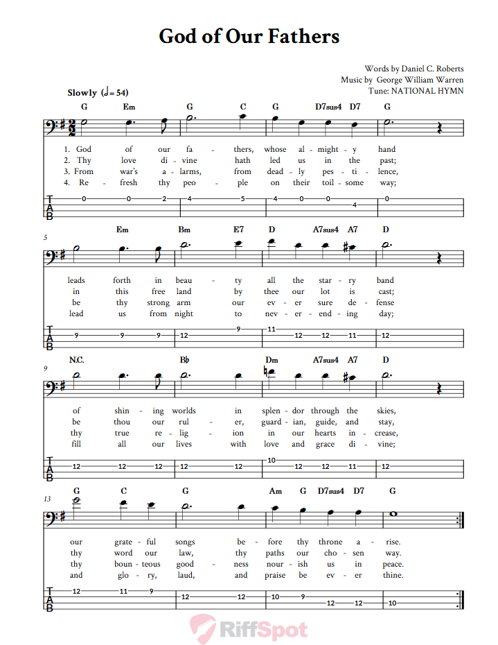 God of Our Fathers: Chords, Sheet Music, and Tab for Bass