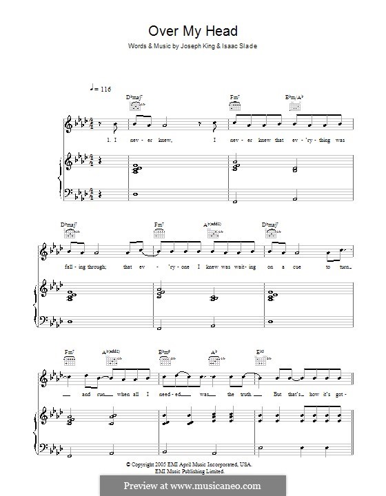 Over My Head (Cable Car) sheet music by The Fray (Lyrics