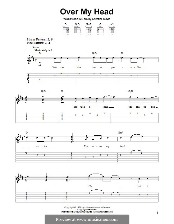 Over My Head Sheet Music | Fleetwood Mac | Guitar Chords