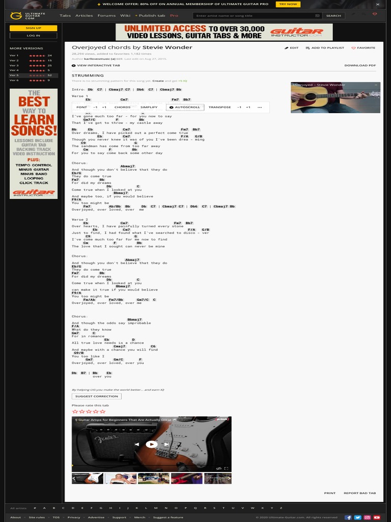 OVERJOYED CHORDS (ver 5) by Stevie Wonder @ Ultimate