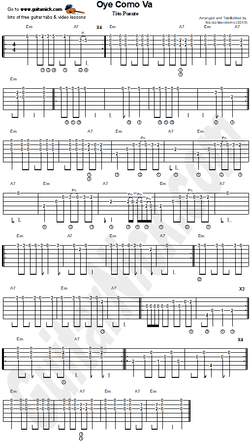 OYE COMO VA: Fingerstyle Guitar Tab - GuitarNick
