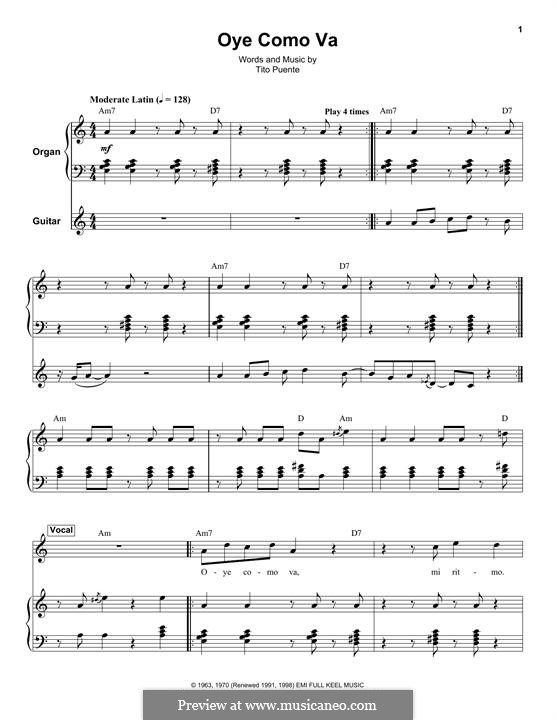 Oye Como Va Sheet Music | Santana | Piano, Vocal & Guitar