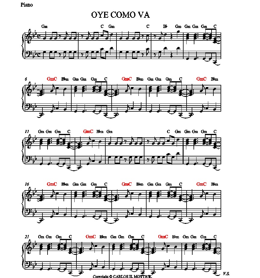 Oye Como Va sheet music by Santana (Lyrics & Chords – 47650)