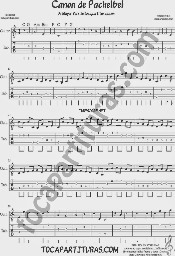 Pachelbel Canon Guitar Tab