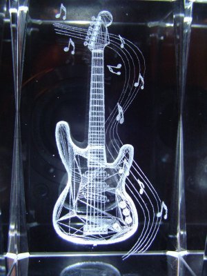 3D ELECTRIC GUITAR #4 3 Inch GLASS PAPERWEIGHT Laser