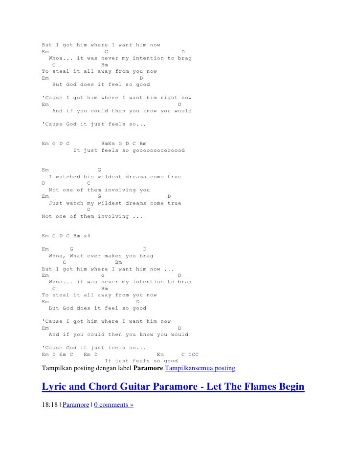 Lyrics and chords guitar paramore