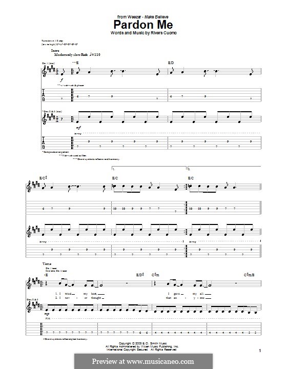 Pardon Me (Weezer) by R. Cuomo - sheet music on MusicaNeo