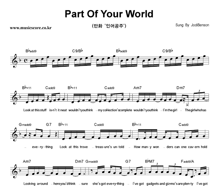 [악보/듣기] Jodi Benson Part Of Your World 악보 (인어공주OST) : 네이버 블로그