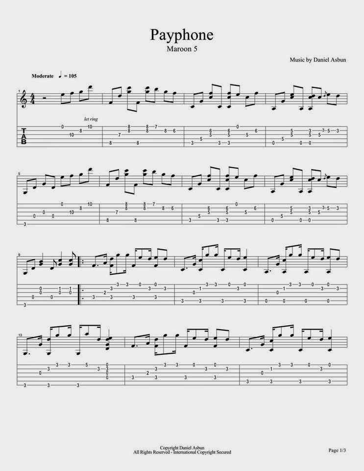 Payphone - Maroon 5 - Free Guitar Tabs & Sheet Music