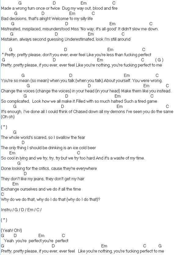 Perfect By Pink Guitar Chords