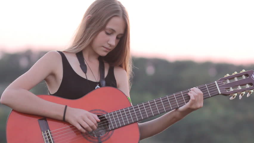 Teen Girl Playing Guitar at Stock Footage Video (100%