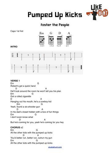 Pumped up kicks. C/o the Ukulele Teacher. | Ukulele songs