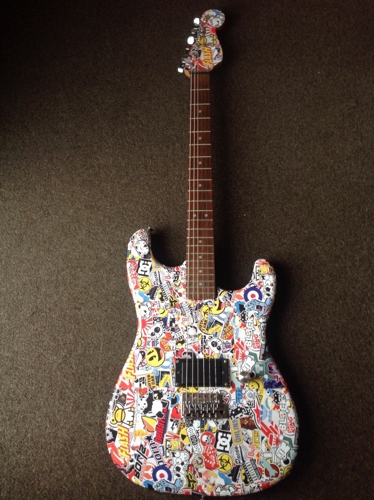 Encore "Sticker bomb punk rock" electric guitar with