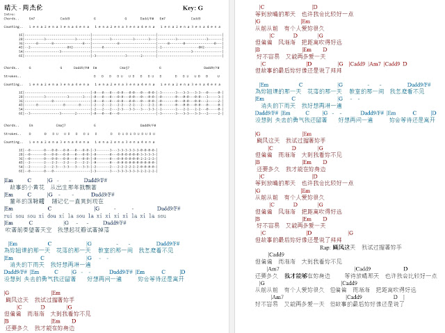 Qing Tian - Jay Chou Chordsheet (晴天 - 周杰