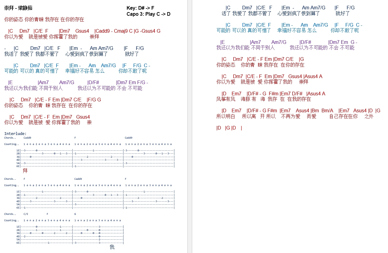 TalkingChord.com: 熊天平 - 爱情多瑙河 (吉他谱 Chords)
