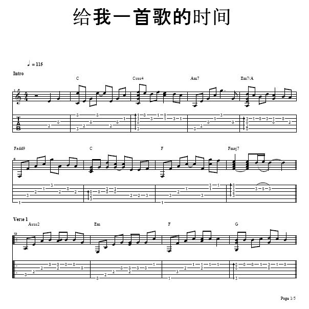 GUITAR: Jay Chou 周杰伦- 给我一首歌的时间