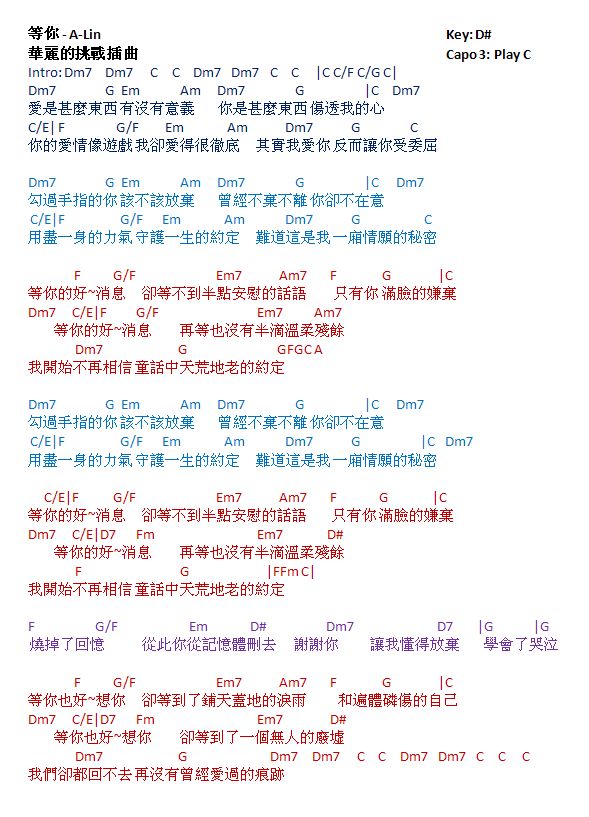 Jay Chou - Fine Day Sub'd Chords - Chordify