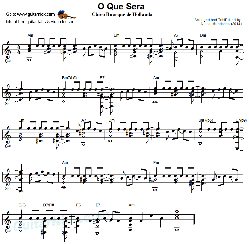 O QUE SERA': Fingerstyle Guitar Tab - GuitarNick.com