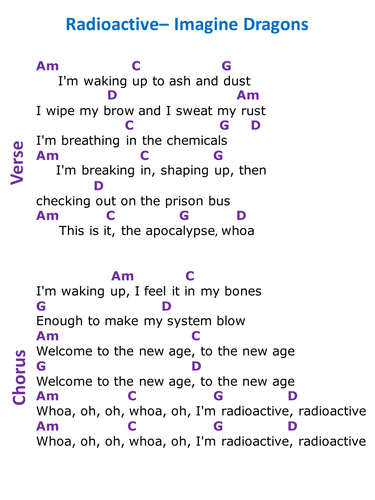 Radioactive by Imagine Dragons - Guitar Chords/Lyrics