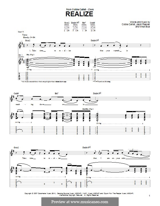 Colbie Caillat "Realize" Guitar Tab in G Major - Download