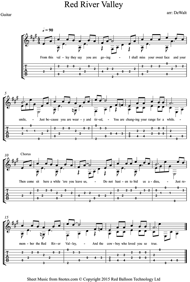 Guitar Tab and sheet music for Red River Valley