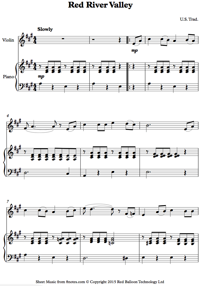 violin red river valleyVLN sheet music - 8notes.com