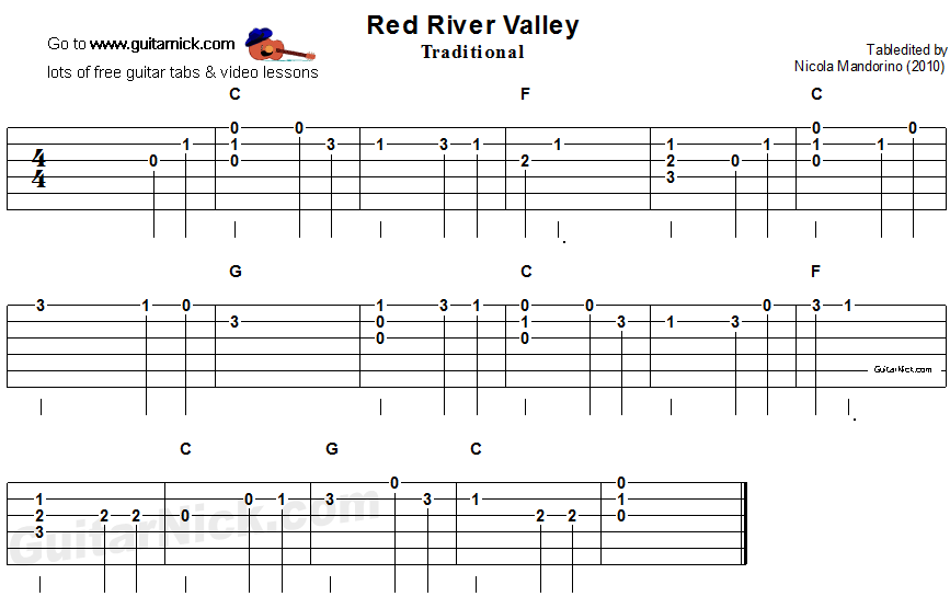 RED RIVER VALLEY Easy Guitar Tab: GuitarNick.com